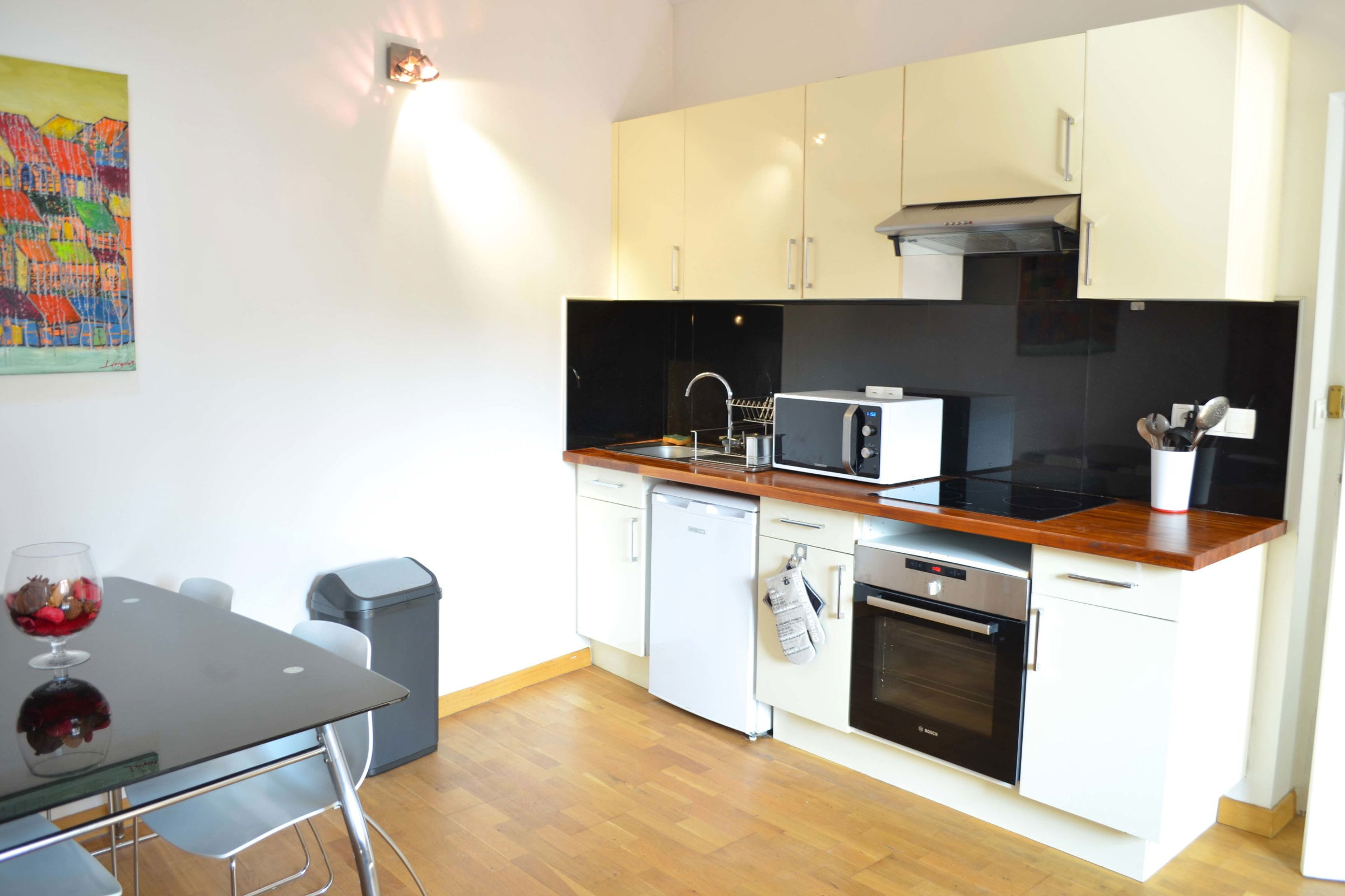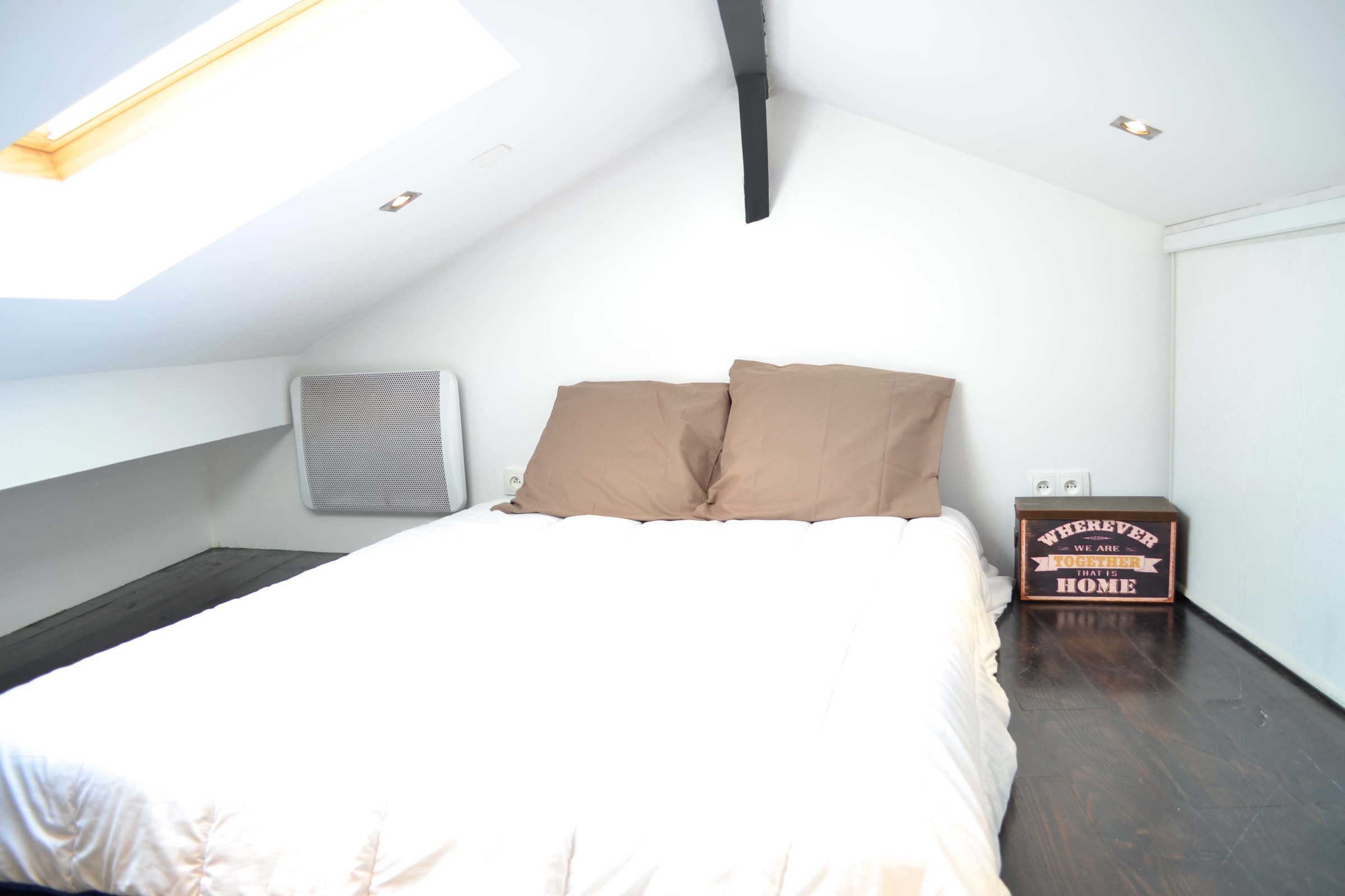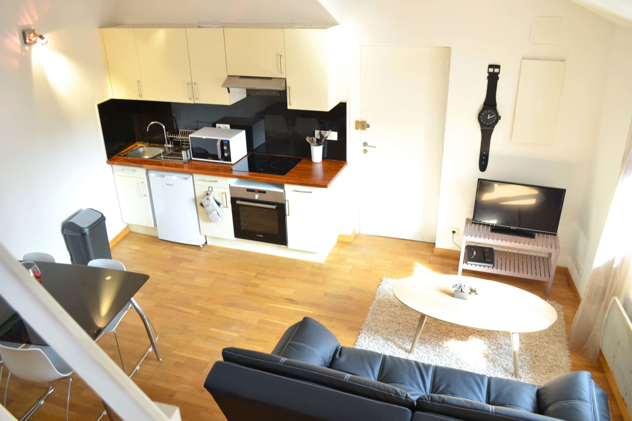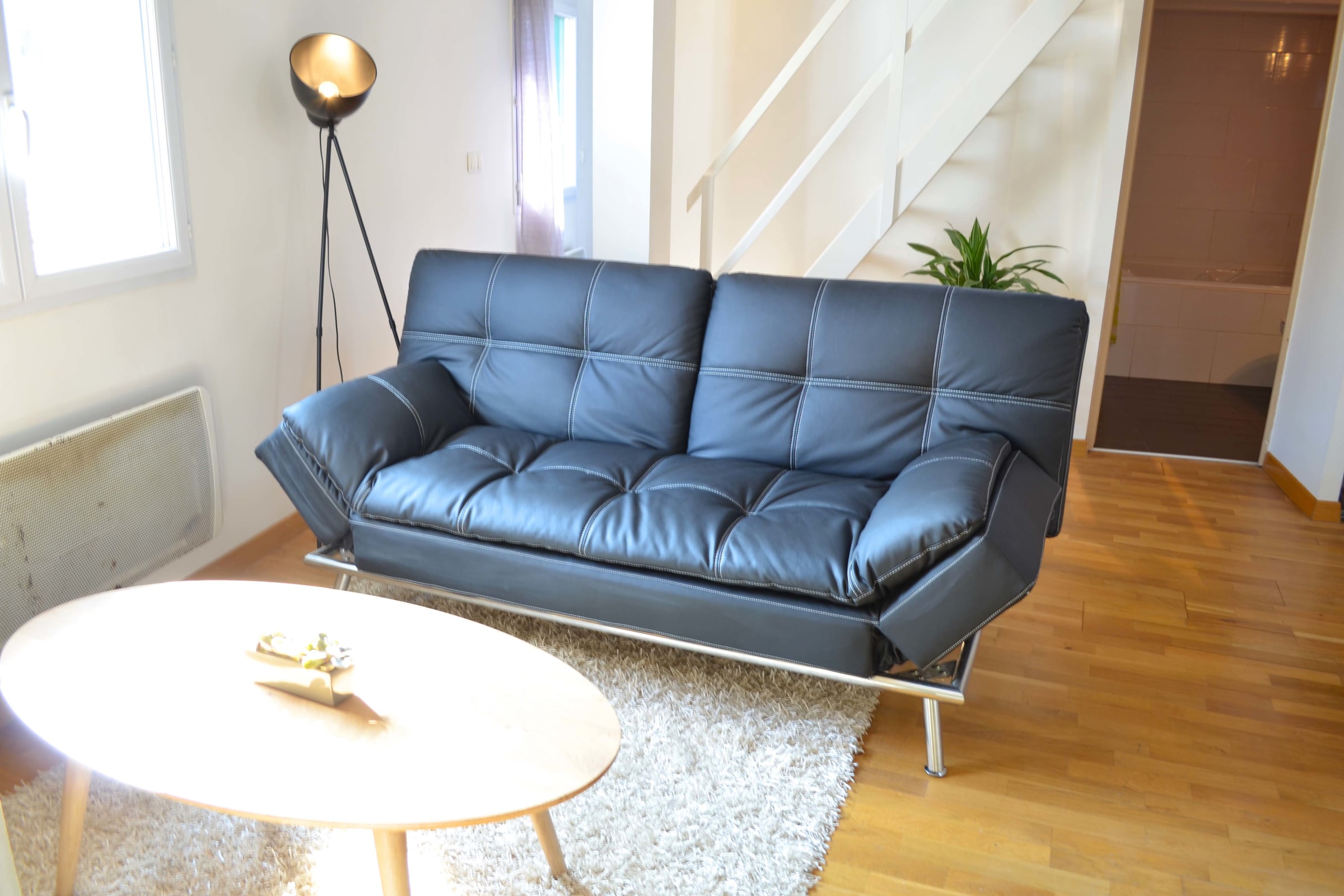 This 2-room duplex consists of a living room with a dining table for 4 people, a fully equipped kitchen, a bedroom, a bathroom with toilet and a mezzanine with sleeping area. For your information, in the mezzanine bedroom, you will not be able to stand-up.