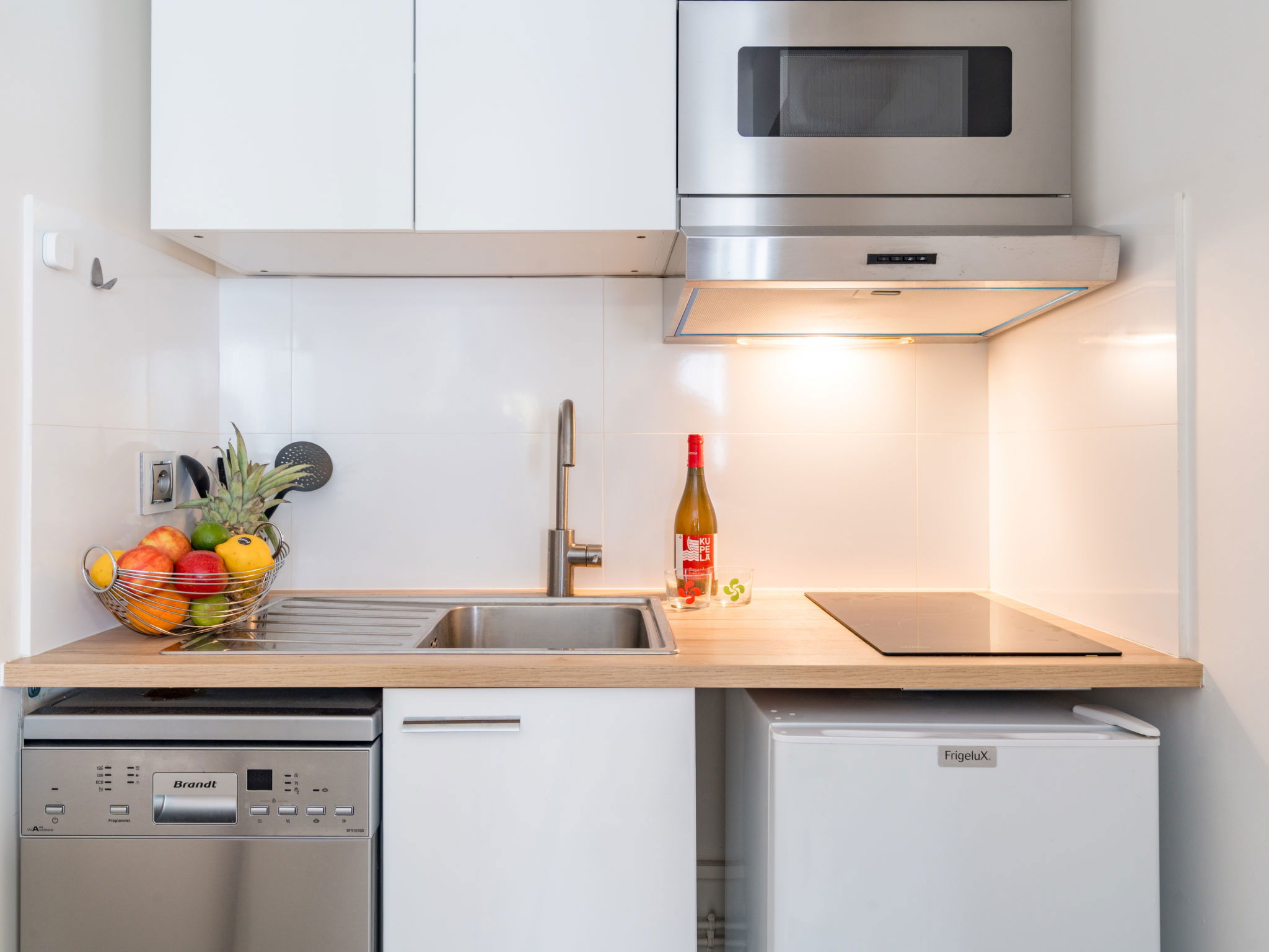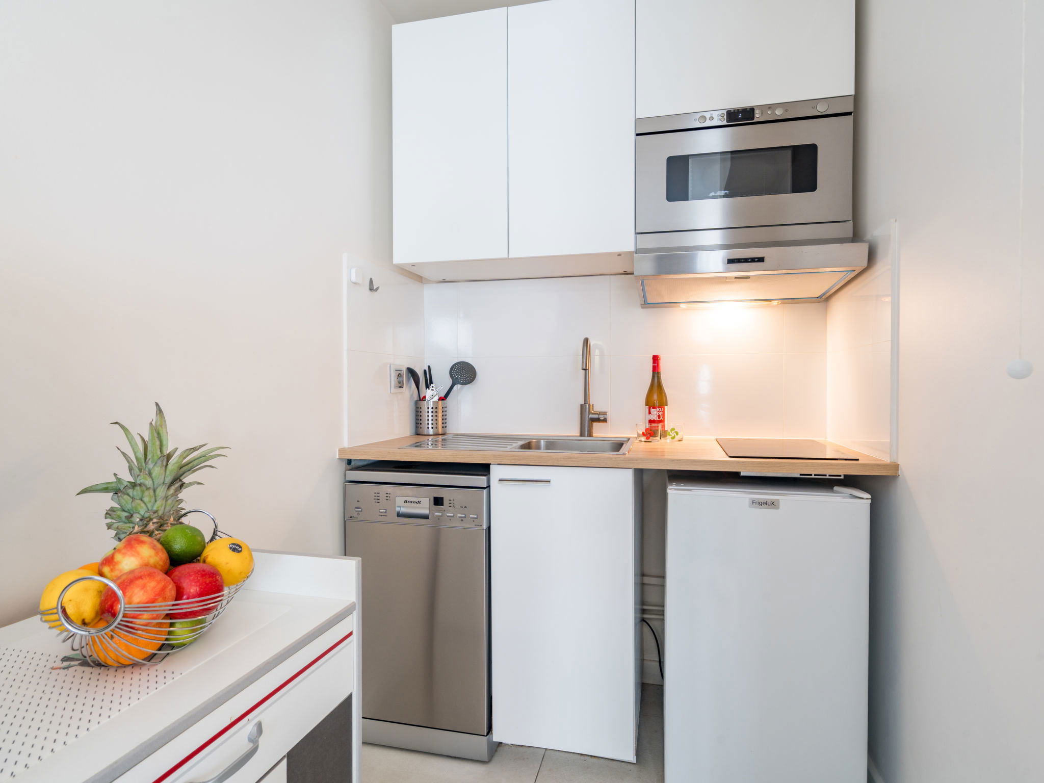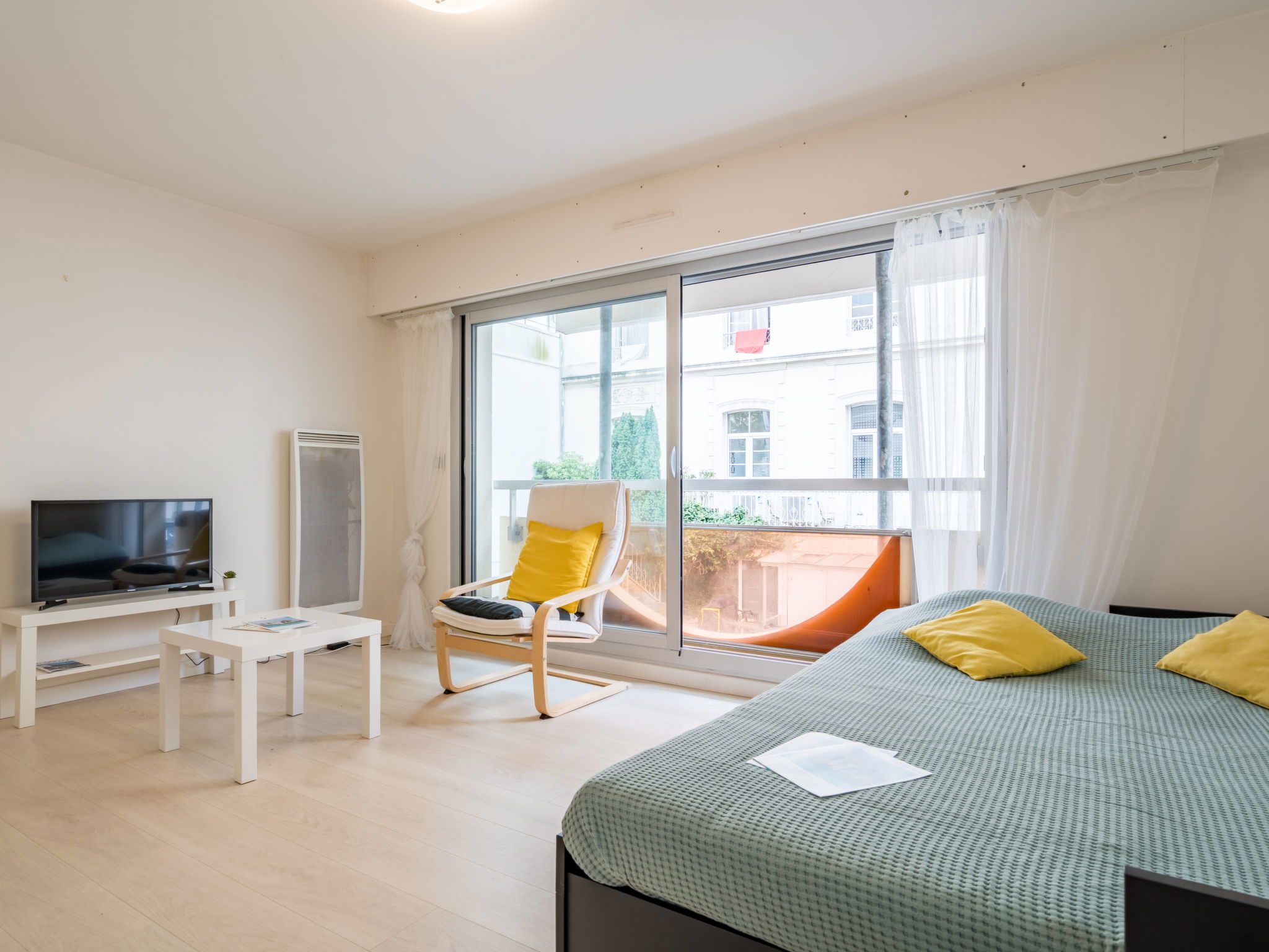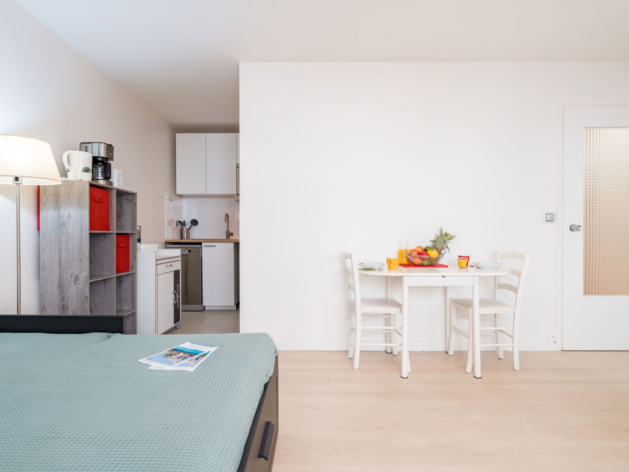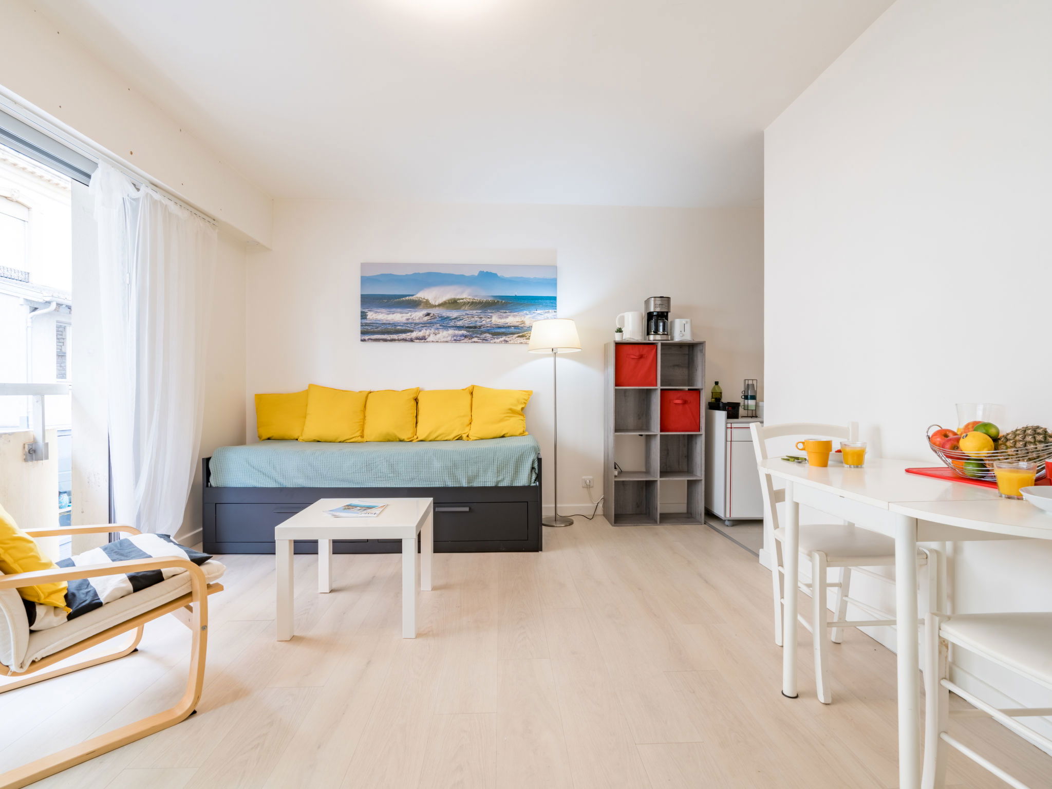 1-room studio 26 m2 on 1st floor. Bright, comfortable furnishings: living/sleeping room with 2 pull-out beds (2 x 80 cm, length 190 cm). Kitchenette (dishwasher, toaster, kettle, microwave, electric coffee machine). Shower/WC. Electric heating. Facilities: washing machine, iron, hair dryer. Internet (WiFi, extra). Please note: non-smokers only. Smoke alarm. Offer by a private individual according to Art. 155, IV of CGI. 64122004199BC