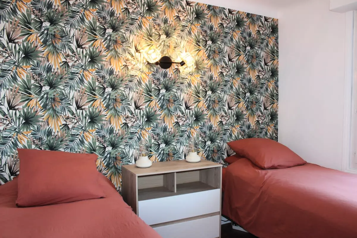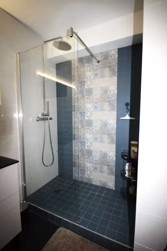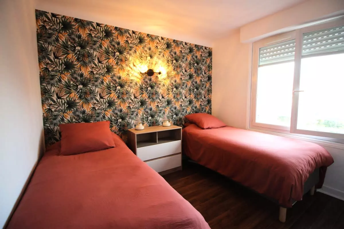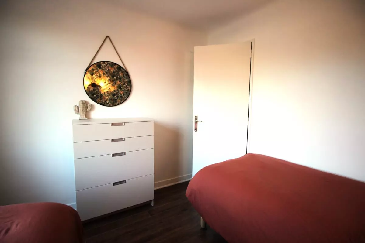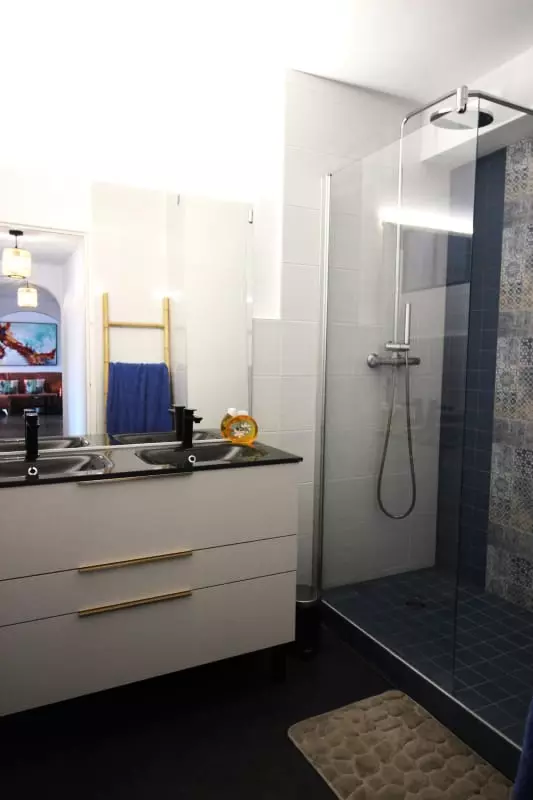 The bedroom has two twin beds. The second bedroom offers a queen-size bed. A large shower room completes the sleeping area. The toilet is separate.