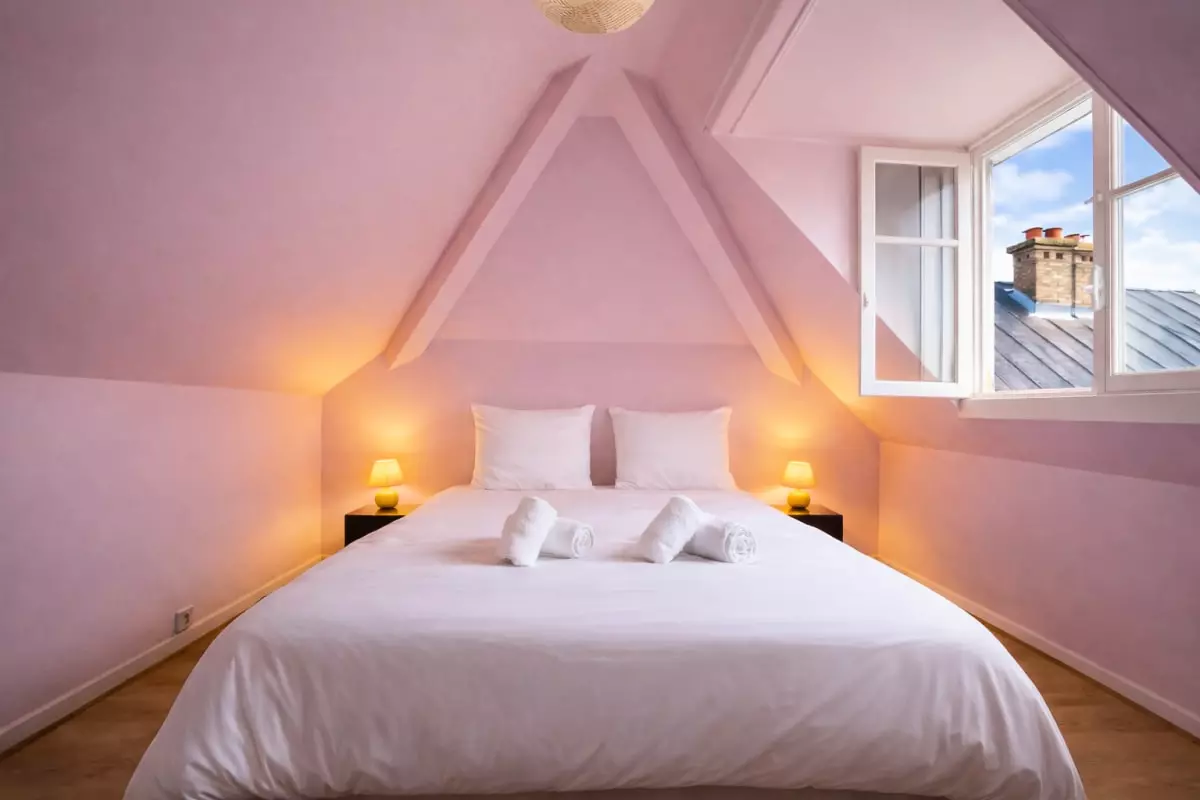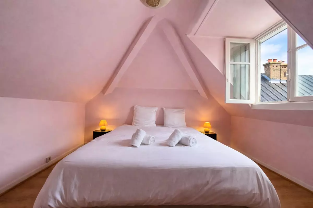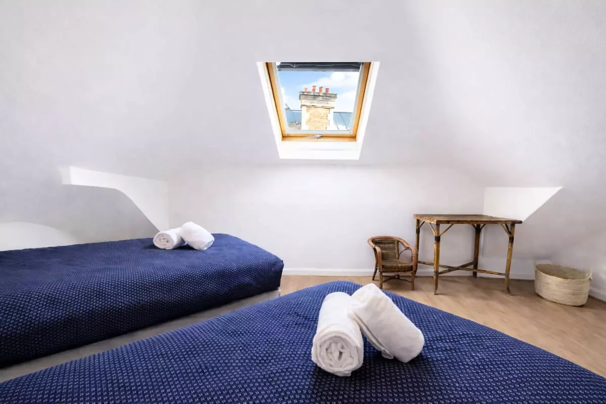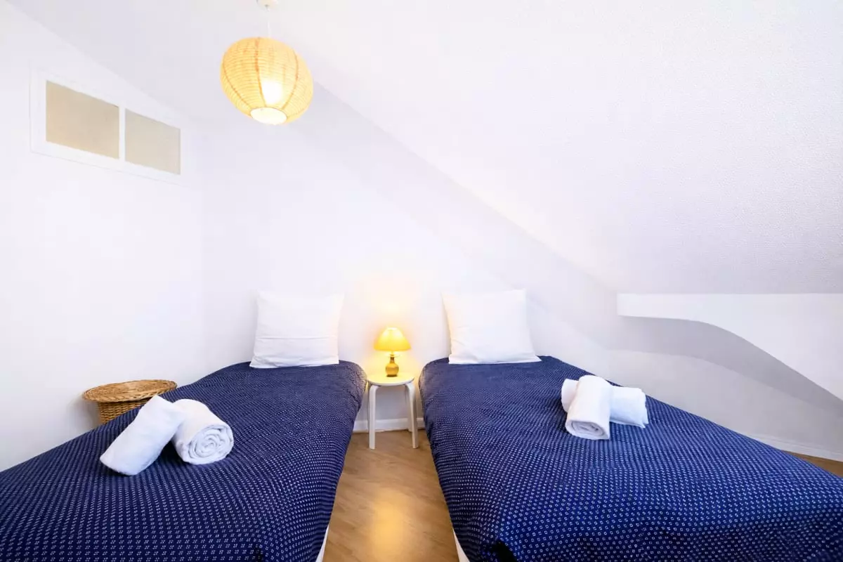 - The apartment has two bedrooms, each furnished with practical storage for a comfortable stay. The bedroom has a double bed (160x200), ideal for a couple, while the second offers two single beds (90x200), perfect for accommodating children or friends.