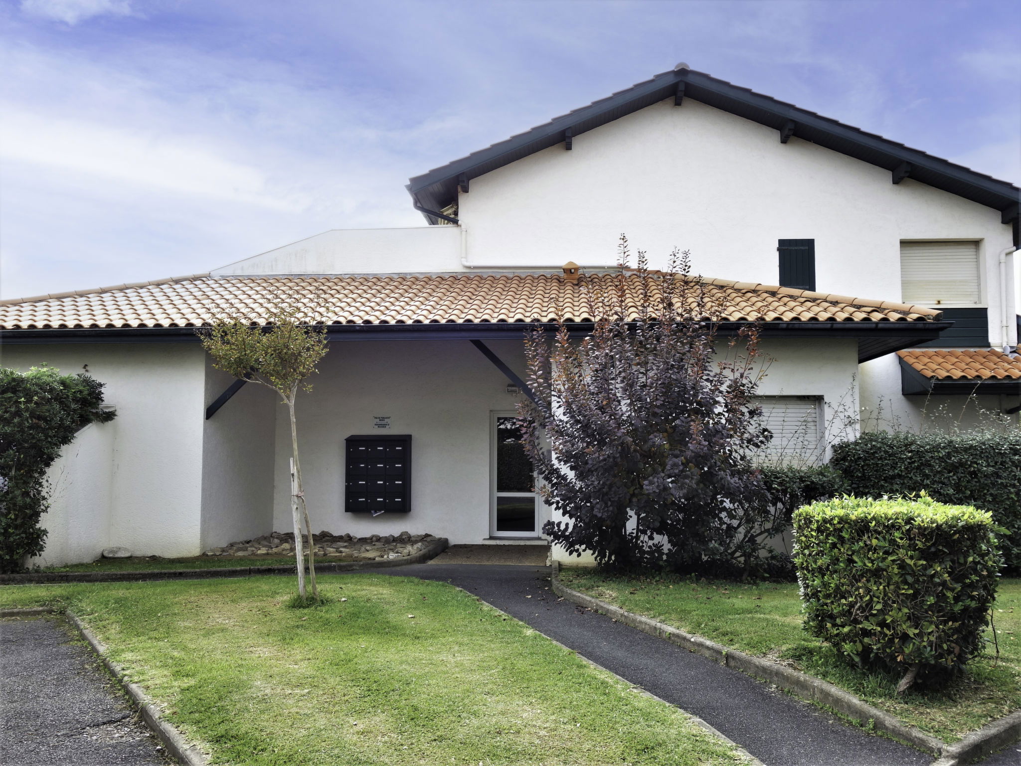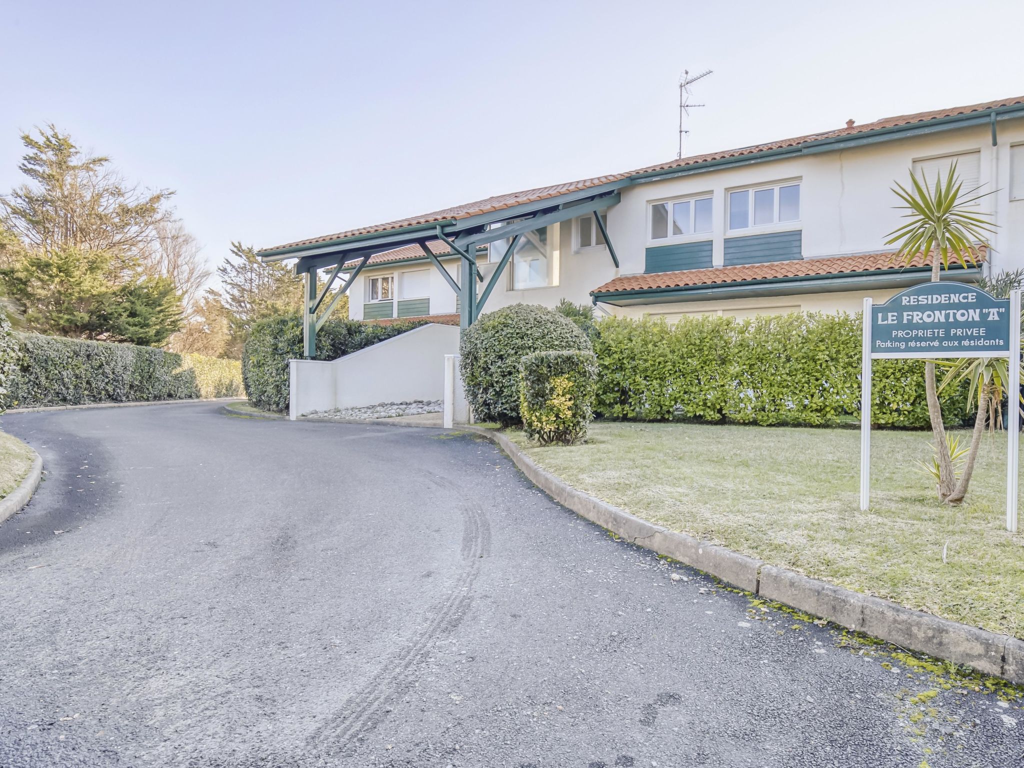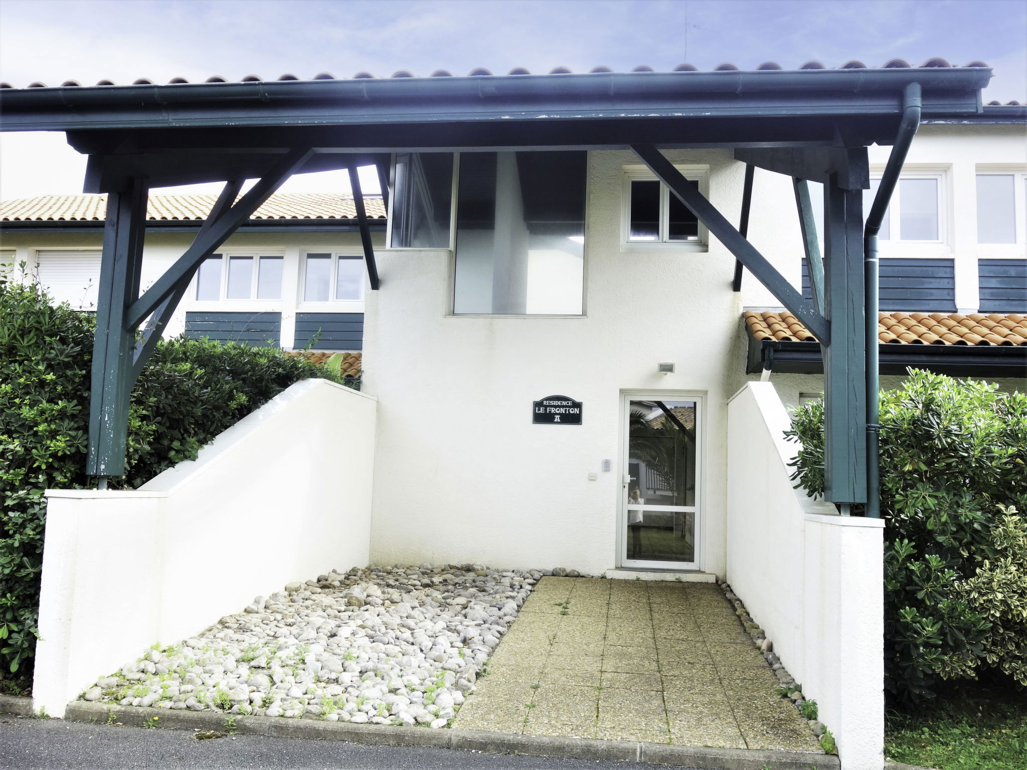 Bidart: Residence "Le Fronton". In the centre of Bidart, excellent location: right in the centre but still quiet, 400 m from the sea, 400 m from the beach. Grocery 400 m, supermarket 1.2 km, restaurant, bar, bakery 400 m, 2 minute walk to the centre, bus stop 150 m, railway station "La Négresse" 4 km, sandy beach "Plage de Erretegia" 400 m. Nearby attractions: Centre de golf international, d'Ilbarritz 1 km, Biarritz 5 km, Bidapark 1.5 km, Cité de l'Océan 3 km. Hiking paths: La Rhune 20 km. Please note: airfield 6.4 km from the property.