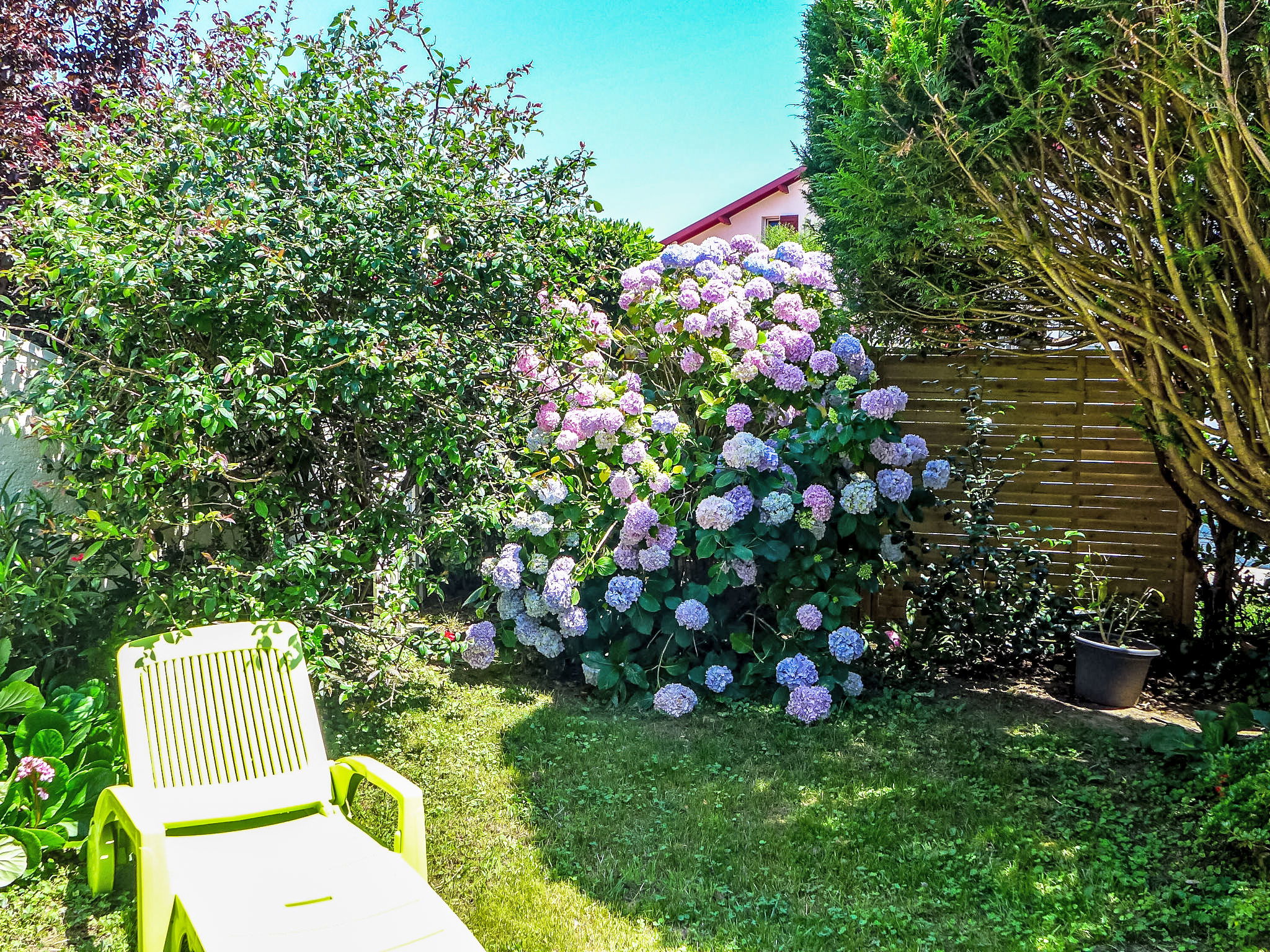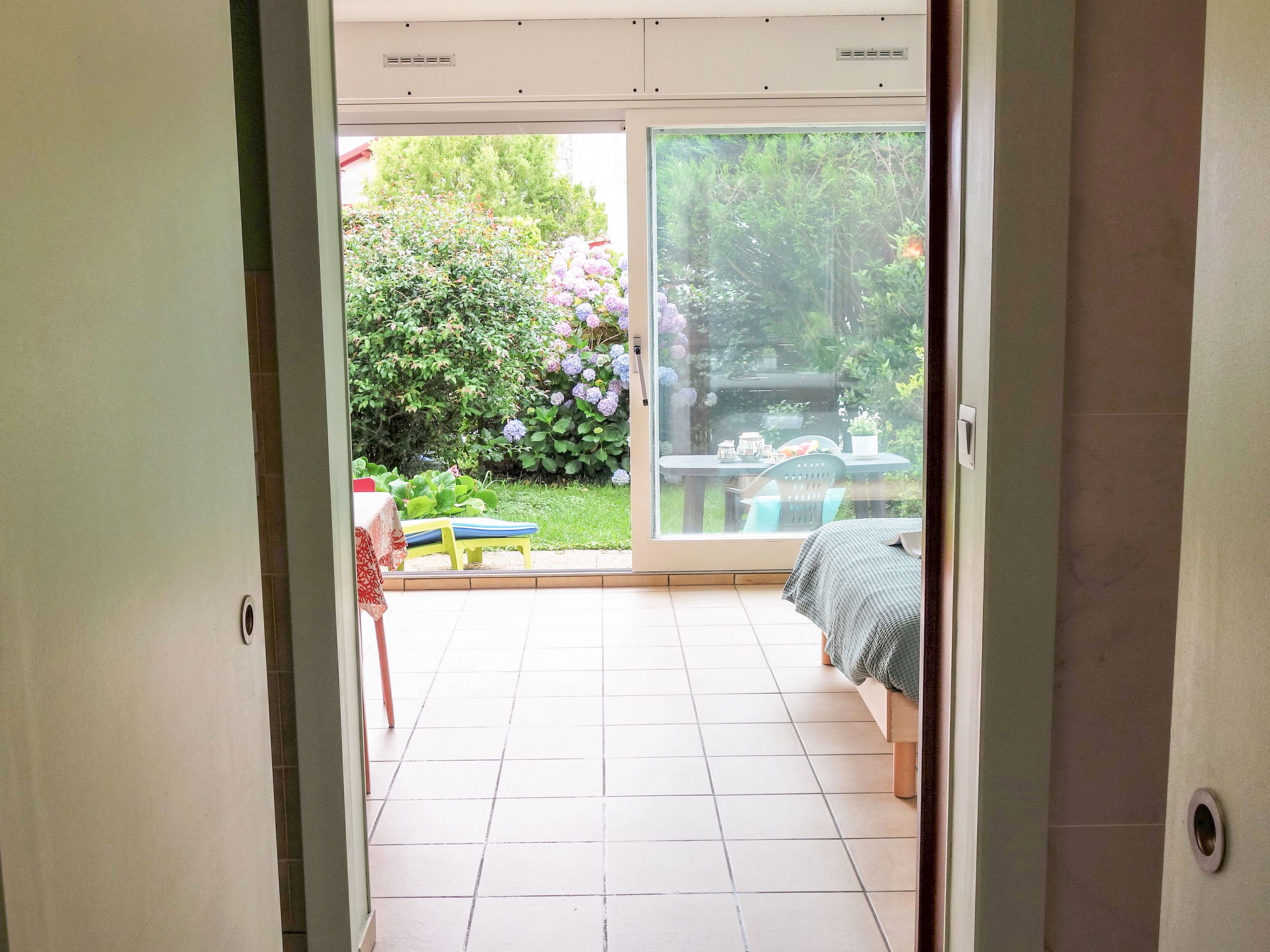 1-room apartment 30 m2, on the ground floor. Beautiful furnishings: living/sleeping room with 1 french bed (1 x 140 cm, length 190 cm), TV (flat screen). Exit to the patio. Kitchen (4 ceramic glass hob hotplates, microwave). Bathroom, sep. WC. Gas heating. Terrace 10 m2, large patio 35 m2, south facing position and, east facing position. Terrace furniture, deck chairs. Facilities: washing machine. Internet (WiFi, free). Reserved parking space n 59. Please note: smoke alarm. 641250002694D