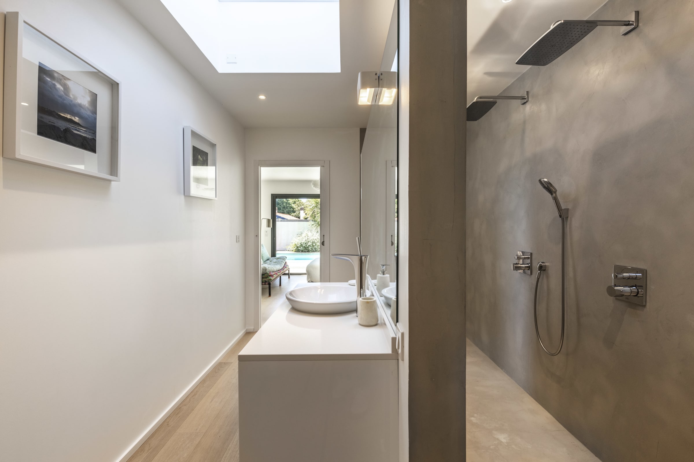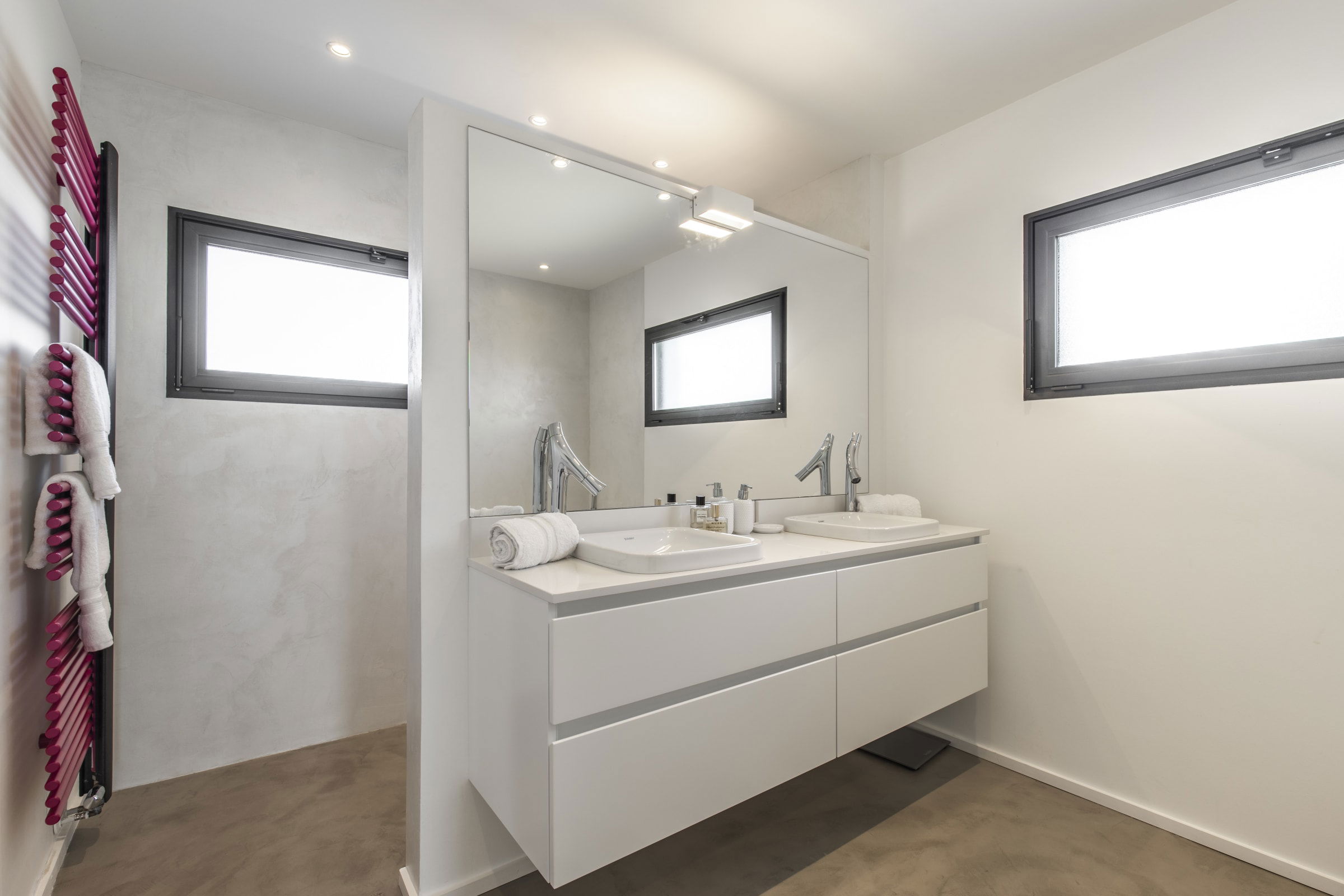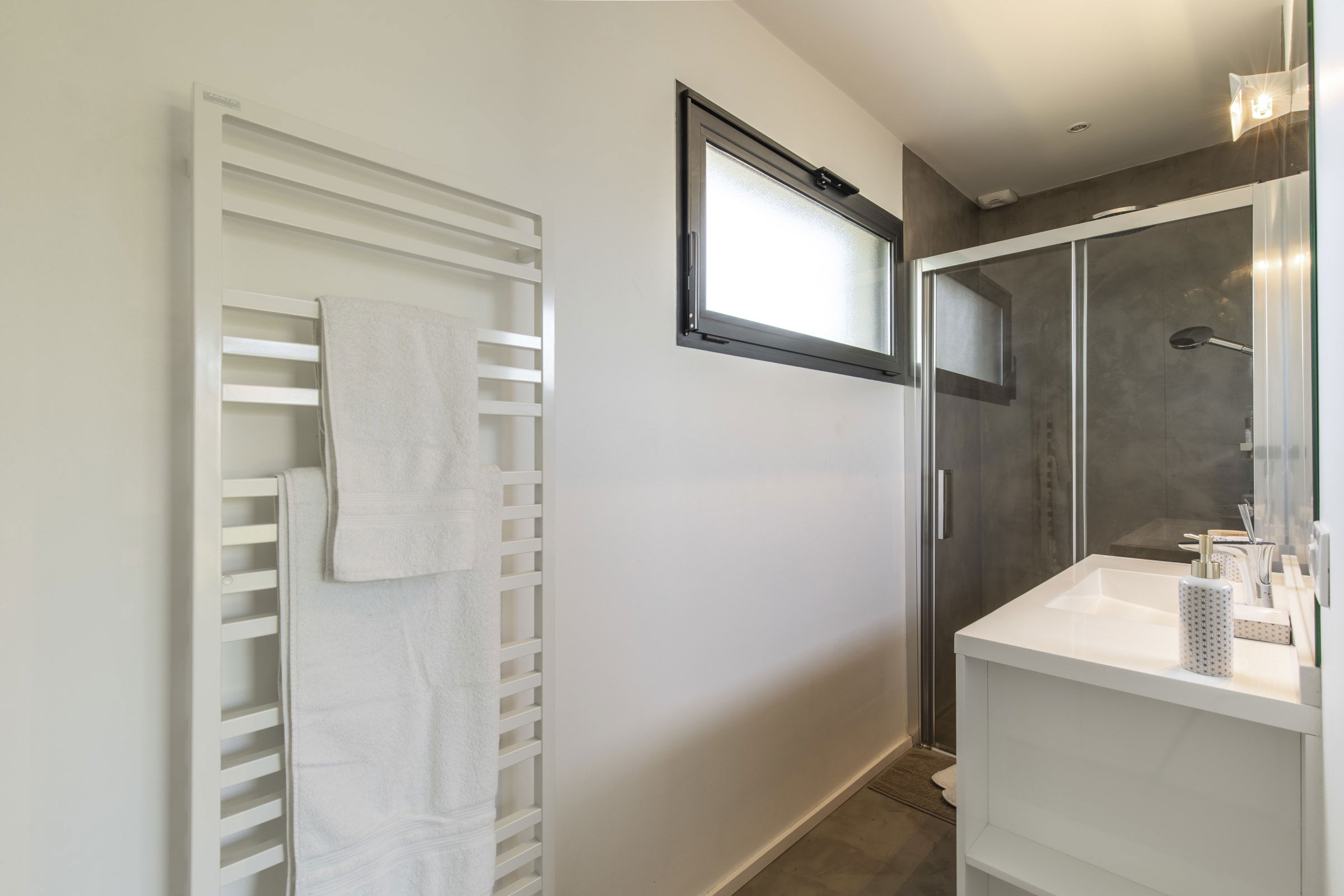 -A second suite with a double Queen size bed, a shower, towel dryer, one bassin. This bedroom gives onto an outdoor terrace.